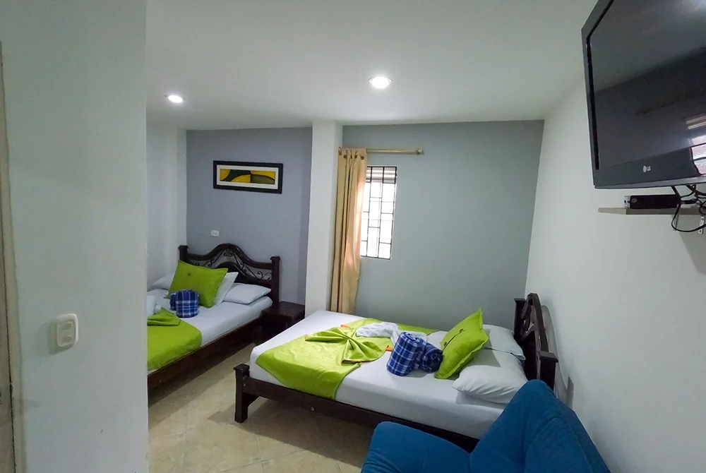 La habitación familiar está ubicada en el 3 piso tiene 2 camarotes, y 1 cama sencilla.
