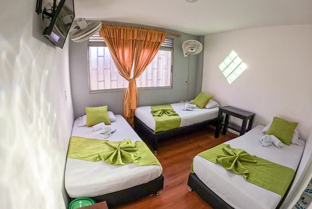 Todas las habitaciones están adecuadas con cama doble, semi-doble o sencilla según se requiera, tienen baño privado con agua Caliente, ventilador, TV LCD, wifi en todo el hotel, algunas cuentan con mesita y/o silla.